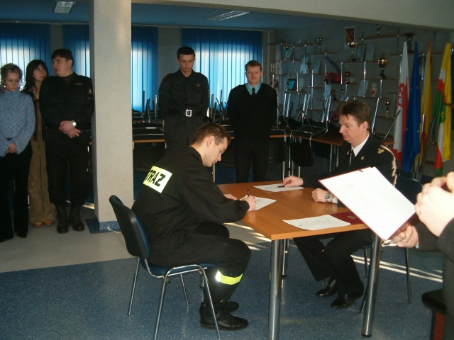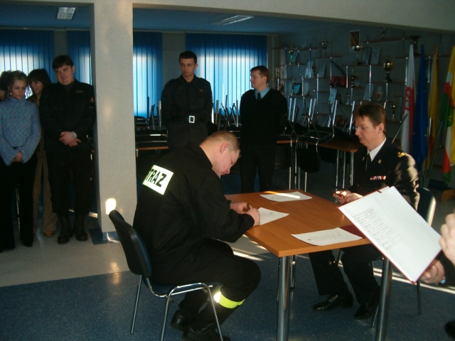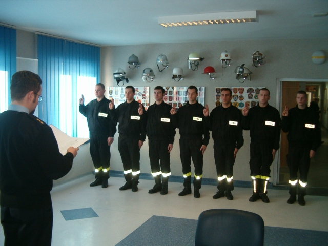 złożenia ślubowania przez siedmiu strażaków przyjętych do służby w