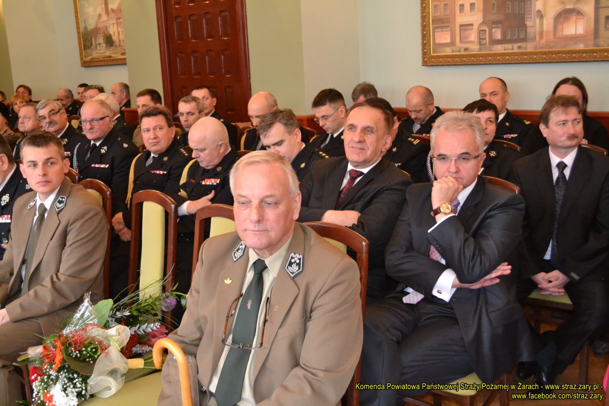 - 30 stycznia 2015 r. 30 stycznia 2015 r. w Sali Konferencyjnej Urzędu Miejskiego w Żarach odbyła się uroczystość zdania i przejęcia obowiązków Komendanta Powiatowego Państwowej Straży Pożarnej w Żarach. Obowiązki komendanta z dniem 31 stycznia 2015 r. zdał Pan st. bryg. Dariusz Łoś, natomiast z dniem 1 lutego 2015 r. przejął je Pan st. kpt. Robert Słowikowski.