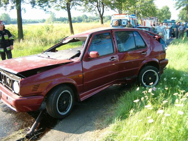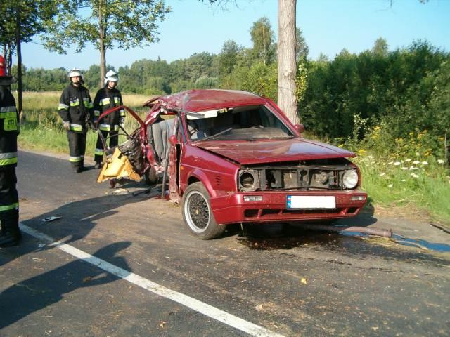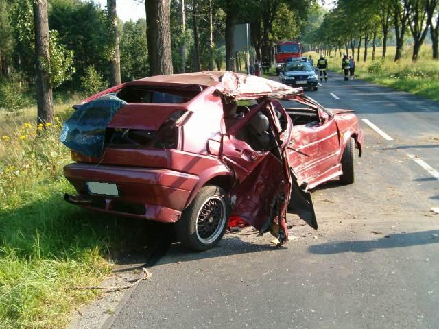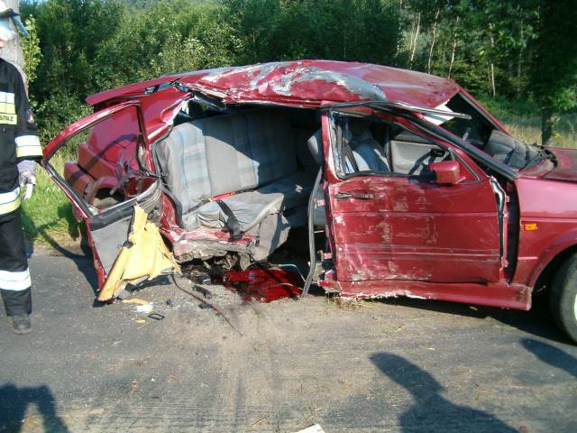 Wypadek drogowy - Buczyny - 05.08.2004 r. W dniu 05 sierpnia 2004 r. doszło do wypadku samochodowego. Samochód marki VW Golf podczas wyprzedzania innego pojazdu uderzył prawym bokiem w przydrożne drzewo. Działania zastępów GBA 2/22/4, z JRG Żary i GBM 2/8 z OSP Trzebiel polegały na zabezpieczeniu miejsca zdarzenia i przekazania drogi w stanie nadającym się do dalszego użytkowania. W następstwie wypadku trzy osoby zostały ranne, jedna poniosła śmierć na miejscu (pasażer samochodu). |