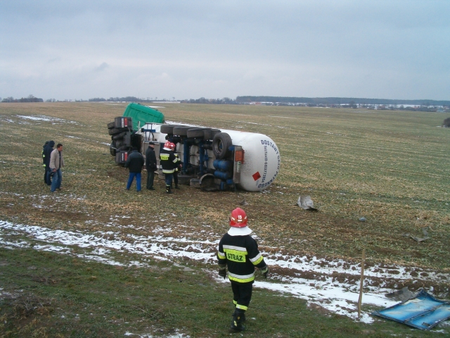 Wypadek cysterny z gazem LPG - obwodnica Jasienia - 01.03.2006 r.