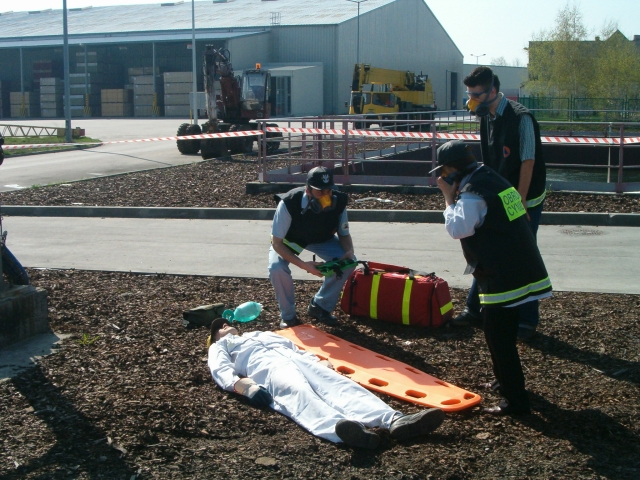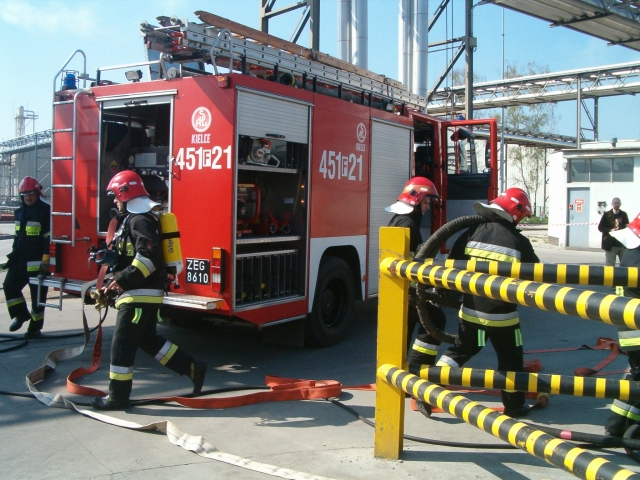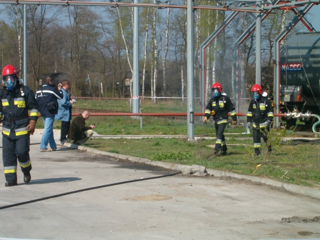 Ćwiczenia w zakładzie Kronopol - 25.04.2006 r. Podczas ćwiczeń zostały sprawdzone założenia wewnętrznego i zewnętrznego planu ratowniczego opracowanego dla zakładu Kronopol