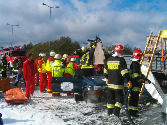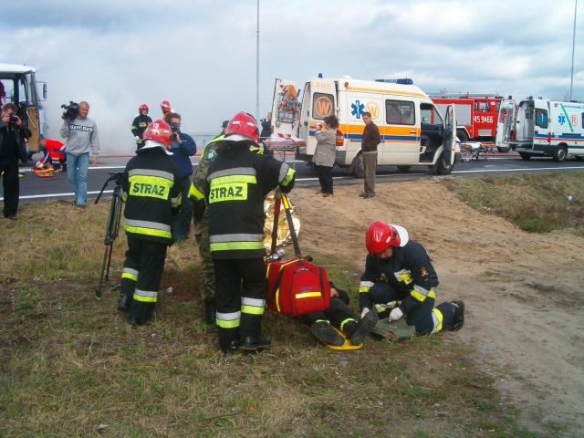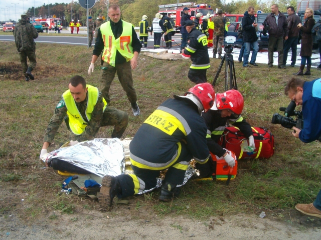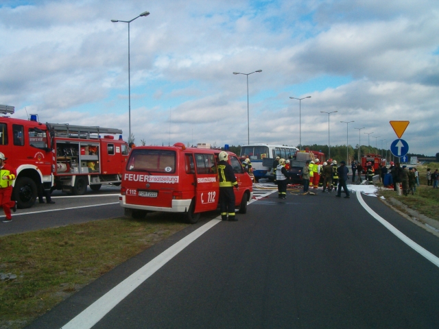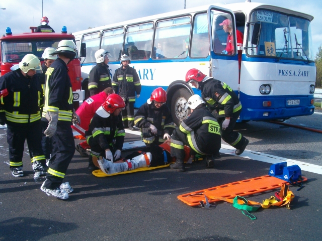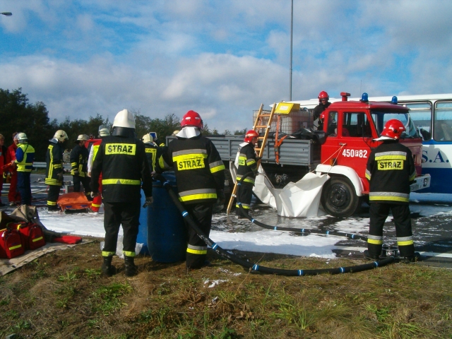ćwiczeniach: Zadania uczestniczących w ćwiczeniach. Straż Pożarna z Polski i Niemiec: przyjęcie informacji o zdarzeniu i zagrożeniu, dysponowanie do zdarzenia niezbędnej ilości sił i środków, zabezpieczenie miejsca katastrofy pod wzglądem pożarowym i wybuchowym, udzielanie pierwszej pomocy przedlekarskiej, rozstawienie namiotów ewakuacyjnych i ratowniczych, współdziałanie z lekarzem w celu przeprowadzenia wstępnej selekcji oraz określenia kolejności uwalniania i ewakuowania poszkodowanych, uwalnianie osób uwięzionych przy użyciu sprzętu ratowniczego oraz ewakuacja poszkodowanych do strefy bezpiecznej, Usunięcie wycieku oleju opałowego. Pogotowie Ratunkowe z Polski i Niemiec: kierowanie i koordynacja działań medycznych, nadzór nad medycznymi działaniami ratowników w zakresie przedlekarskim, prowadzenie i nadzór nad segregacją, transport poszkodowanych do szpitali, sprawowanie nadzoru nad poszkodowanymi oczekującymi na transport. Straż Graniczna: ewakuacja i udzielanie pomocy przedlekarskiej, zabezpieczanie miejsca zdarzenia, wyznaczanie lądowiska dla śmigłowców ratowniczych, organizowanie ruchu drogowego na terenie akcji. Policja: organizowanie ruchu drogowego na terenie akcji, wyznaczanie lądowiska dla śmigłowców ratowniczych ochrona mienia osób poszkodowanych, prowadzenie czynności dochodzeniowo – śledczych.