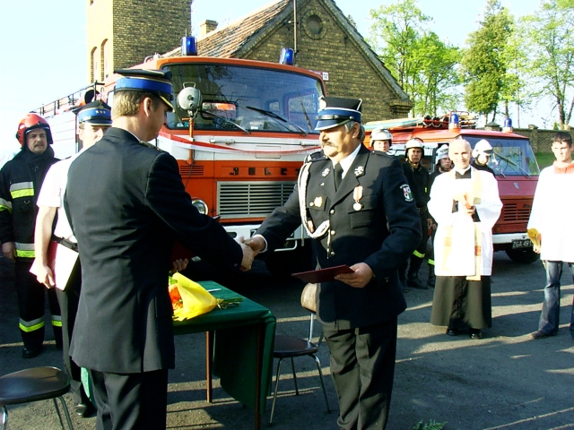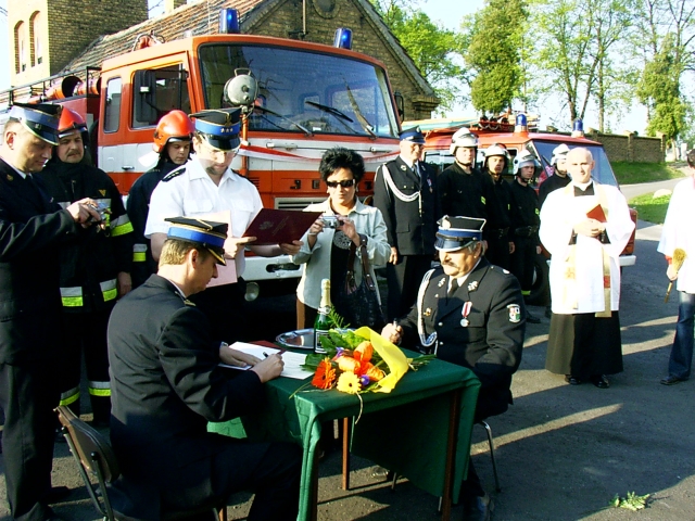 Przekazanie pojazdu pożarniczego - Sieniawa Żarska - 04.05.2006 r. W dniu 04 maja 2006 r. Komenda Powiatowa PSP w Żarach przekazała dla Ochotniczej Straży Pożarnej w Sieniawie Żarskiej samochód gaśniczy Jelcz 004 GCBA 6/32. Samochód został przekazany z Jednostki Ratowniczo - Gaśniczej PSP w Żarach.