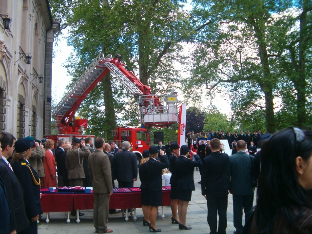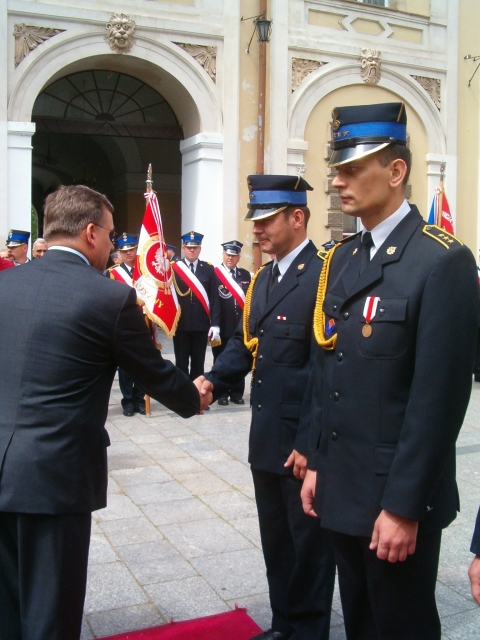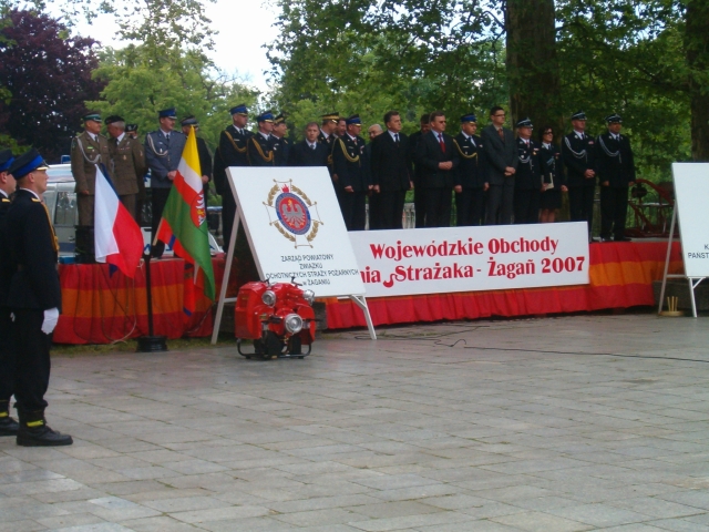 Wojewódzkie Obchody Dnia Strażaka, Żagań - 18 maja 2007 r. W dniu 18 maja 2007 r. w Żaganiu odbyły się uroczystości związane z wojewódzkimi obchodami dnia strażaka. W tym dniu zostały przyznane medale i odznaczenia oraz wręczone akty mianowania na wyższe stanowiska i stopnie służbowe. |