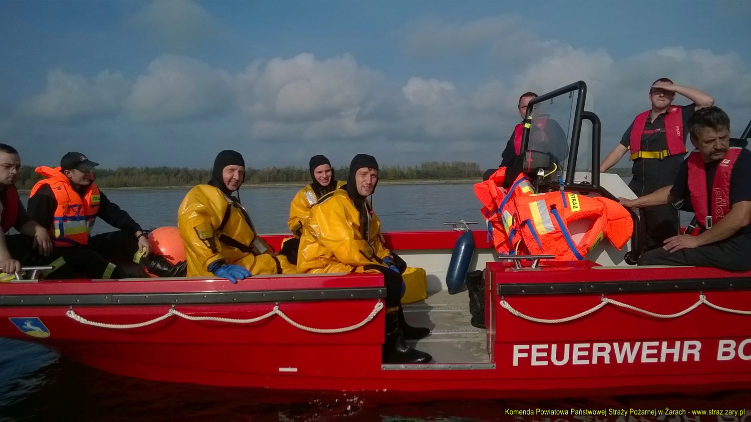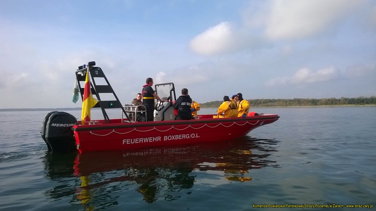 Ćwiczenia z ratownictwa wodnego - Boxberg – 18 października 2014 r. W dniu 18 października 2014 r. strażacy z JRG Żary oraz JRG Lubsko na zaproszenie zaprzyjaźnionej jednostki straży pożarnej z miejscowości Boxberg (Niemcy) uczestniczyli w ćwiczeniach związanych z ratownictwem wodnym. Ćwiczenia zostały przeprowadzone na akwenie wodnym (powierzchnia 1200 ha) powstałym w wyniku zagospodarowania wyrobiska pokopalnianego w miejscowości Boxberg L.O. . Głównym celem ćwiczeń było doskonalenie umiejętności ratownictwa z użyciem sprzętu pływającego i sprzętu podręcznego ratownictwa wodnego: wyciąganie poszkodowanych z wody oraz doskonalenie umiejętności kierowania sprzętem pływającym. W ćwiczeniach wykorzystano sprzęt ratownictwa wodnego zakupiony ze środków pochodzących z Unii Europejskiej z programu Operacyjnego Współpracy Transgranicznej Polska - Saksonia 2007 – 2013.